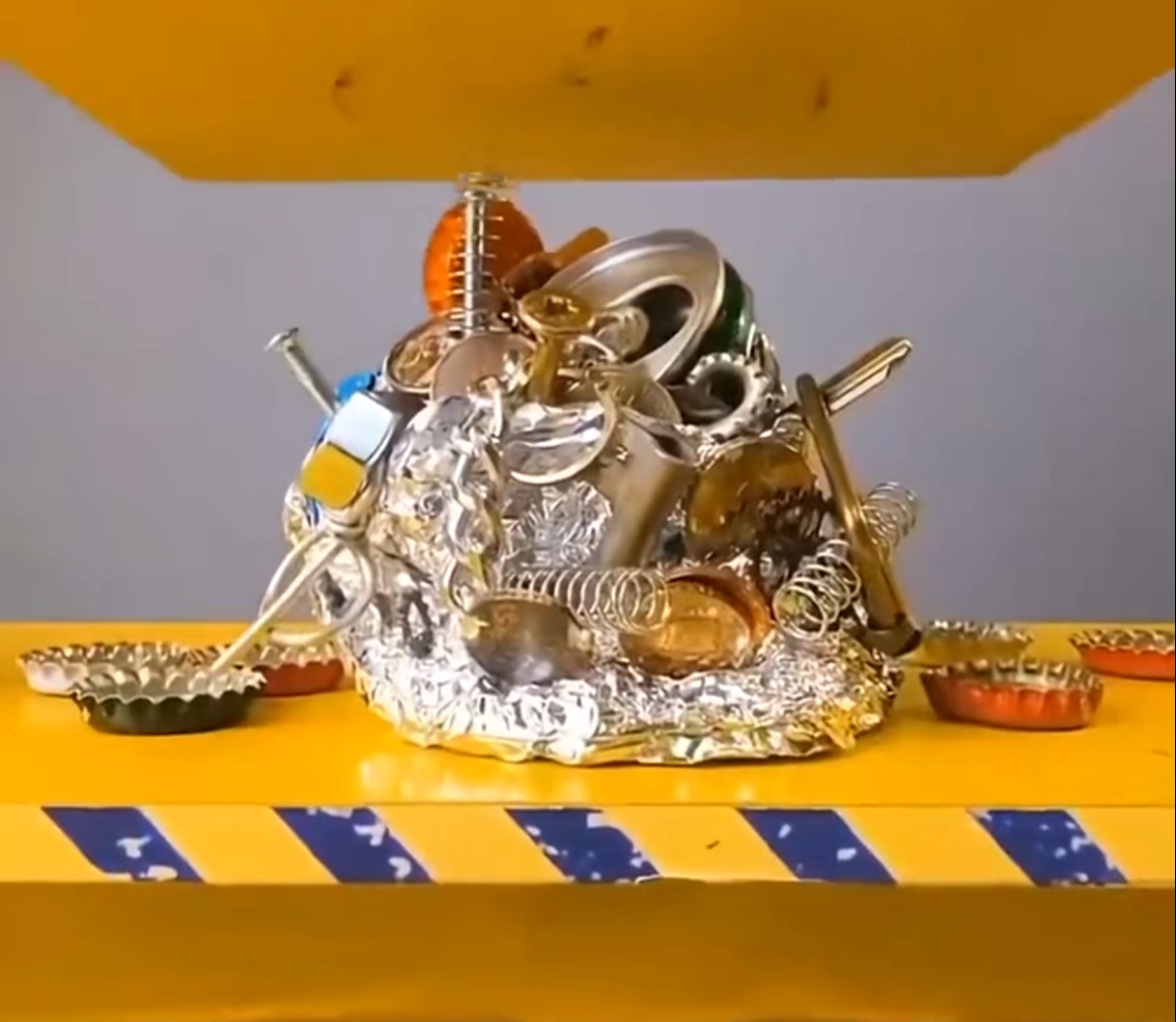 Peut-être qu’Internet m’a rendu trop suspicieux, mais ça m’étonnerait beaucoup qu’il ait trouvé tous ces objets sur la plage dans cet état (même s’il les a lavé avant). Et la grille qu’il réalise après je suis quasiment sûr que c’est 100% d’aluminium (on voit aussi qu’il ne broie que des canettes) et donc probablement pas non plus ce qu’il a trouvé sur la plage.
