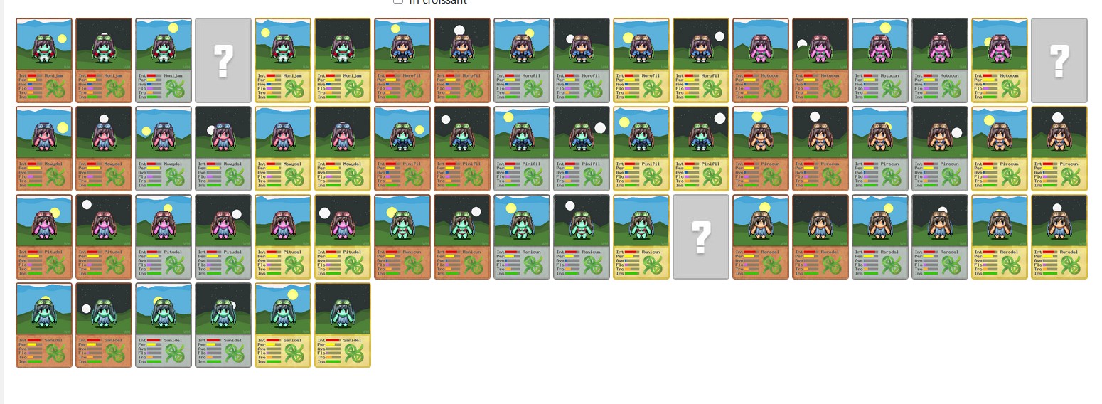 Il faut impérativement que j'achète de nuit ! J'ai tout claqué de jour il y a 6 semaines.... @Kilroy1 Attention ![]() 10 cartes Vouconjam 299 bronze (une carte qui est de jour) te donneront une Vouconjam 257 argent (une carte de jour du coup). Si tu veux une Vouconjam 278 argent version nuit, il te faudra 10 Vouconjam 320 bronze. C'est la version nuit de la carte Vouconjam bronze. J'en ai mis 1 en vente. Et dans le doute j'ai aussi mis 4 Vouconjam B(ronze)-J(our) en vente. 'Va falloir créer des raccourcis je pense sinon ça va vite être illisible! ![]() B, A, O pour bronze, argent, or J,N pour jour nuit.