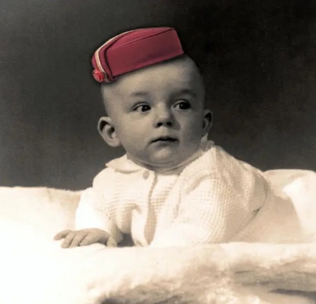 Je n'en suis pas sûr, mais il existe une photo de la même personne adulte avec presque le même couvre-chef de la même couleur.