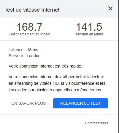@alfosynchro oui ton débit internet / Ping est conforme à de la fibre.
