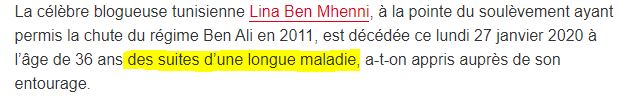 Parce que ce n'était pas un cancer, mais une maladie chronique provoquant une insuffisance rénale https://www.realites.com.tn/2020/01/lina-ben-mhenni-nest-plus/