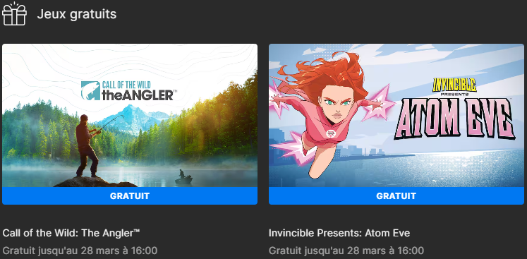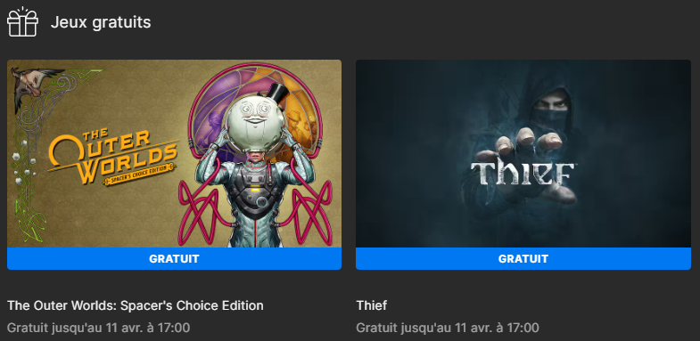 ![]() Sur https://store.epicgames.com/fr/ Deus Ex - Mankind Divided Gratuit jusqu'au 21 mars à 16:00 The Bridge Gratuit jusqu'au 21 mars à 16:00 @Asmodee88, @Berousky, @Danakil, @Guraz, @Jebia, @Optimus_, @PonceuseQueen, @Tchairo, @Wiliwilliam, @Yazguen @JohnLemon --->