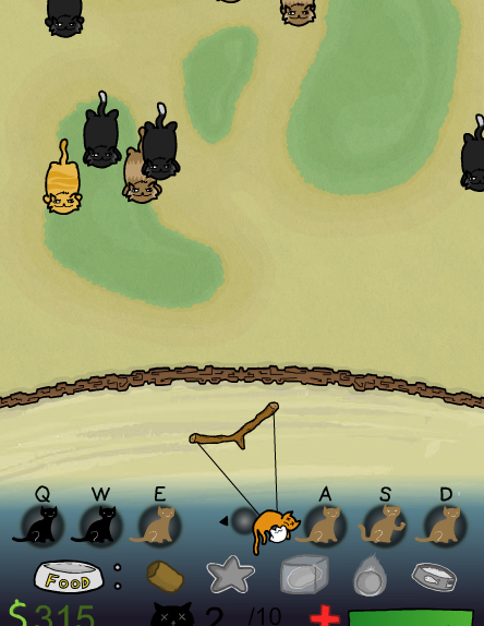 Empêchez l'arrivée de hordes de chats en utilisant un lance-pierre transformable en lance-chats. Vous upgraderez vos chats en les alourdissant et en les combinant avec d'autres éléments ![]() D'autres upgrades disponibles. ![]() Tout à la souris CatGame