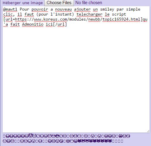 @mawt1 Pour pouvoir a nouveau ajouter un smiley par simple clic, il faut (pour l'instant) telecharger le script