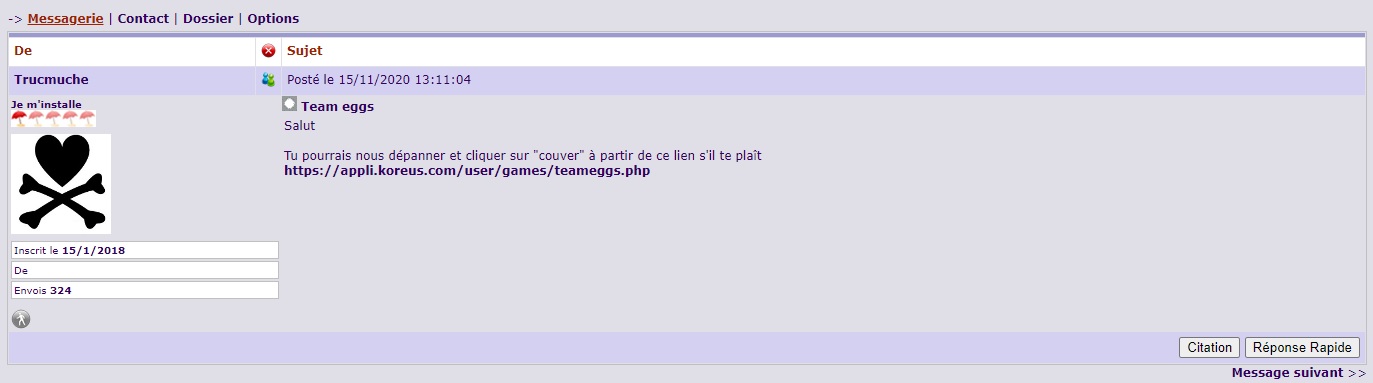 Désolé @Trucmuche , mais je n'ai pas l'intention de me laisser spammer pour un jeu dont je me fiche totalement. Tu as peut-être spammer tout les membres de ton équipe, donc je signale ton mp.