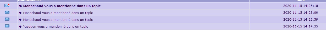 Une notif n'est pas un spam, par contre notifier pour ne rien dire est stupide. Sur ce, j'arrête avec cette histoire, sinon c'est moi qui vais commencer à spammer ce topic. Edit: @Monachaud, @Wiliwilliam, @Koreus ![]() ![]() Tu trouves cela amusant de me spammer de notif' en éditant tes messages ? (je n'en ai screen que 3, mais ça continue, je referais un screen quand il aura fini, vous montrez à combien il en est.) ![]() 5 notifs en 5 mintes.