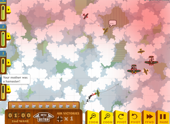 Aidez le robot Skinny à délivrer ce monde apocalyptique de ses esprits en les ramenant à leurs corps ![]() ![]() AWSD pour vous diriger et sauter Souris pour viser, lancer et vous agripper à ce que vous pourrez Skinny Steampunk Un jeu de physique où vous devrez amener les bons personnages sur la surface verte et éjecter les autres hors de l'écran, en supprimant des formes géométriques ![]() ![]() Tout à la souris Steampunk Battle Of Britain Vous piloterez votre escouade d'avions anglais et devrez abattre tous les bombardiers allemands avant qu'ils n'atteignent la zone verte ![]() Vous enchaînerez les niveaux sans que vous ne puissiez réparer vos avions. ![]() Souris pour vous diriger Q/E pour zoomer et l'enlever Je n'ai pas dépassé la vague 9. Battle Of Britain