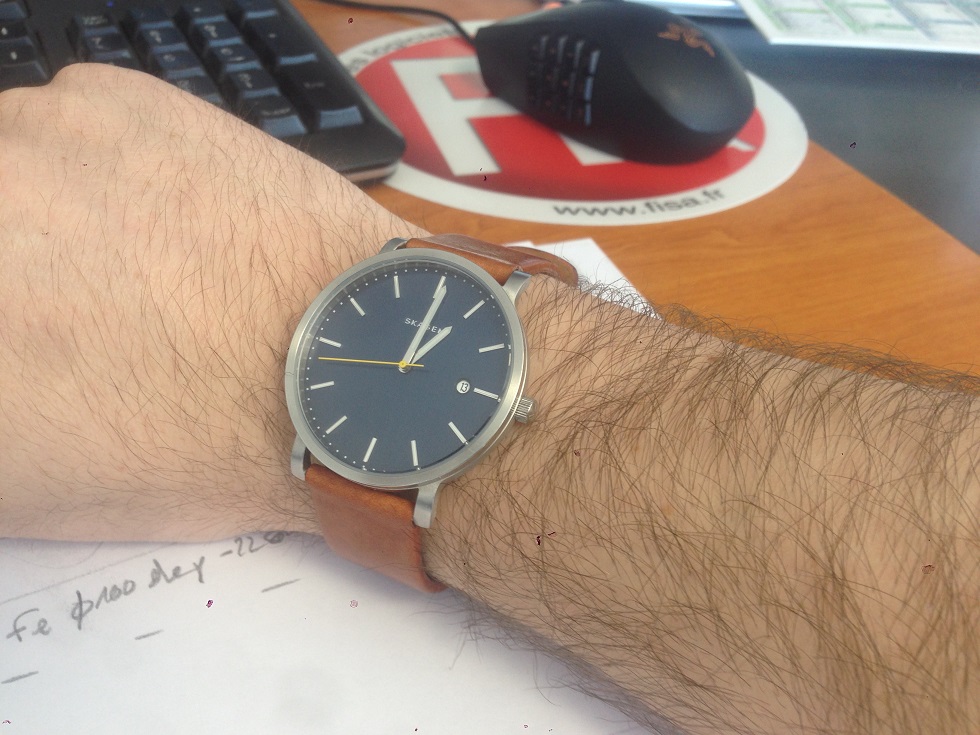 Moi je porte une Skagen, marque découvert lors d'un séjour au Danemark, j'aime beaucoup les matériaux brut, les formes simples...