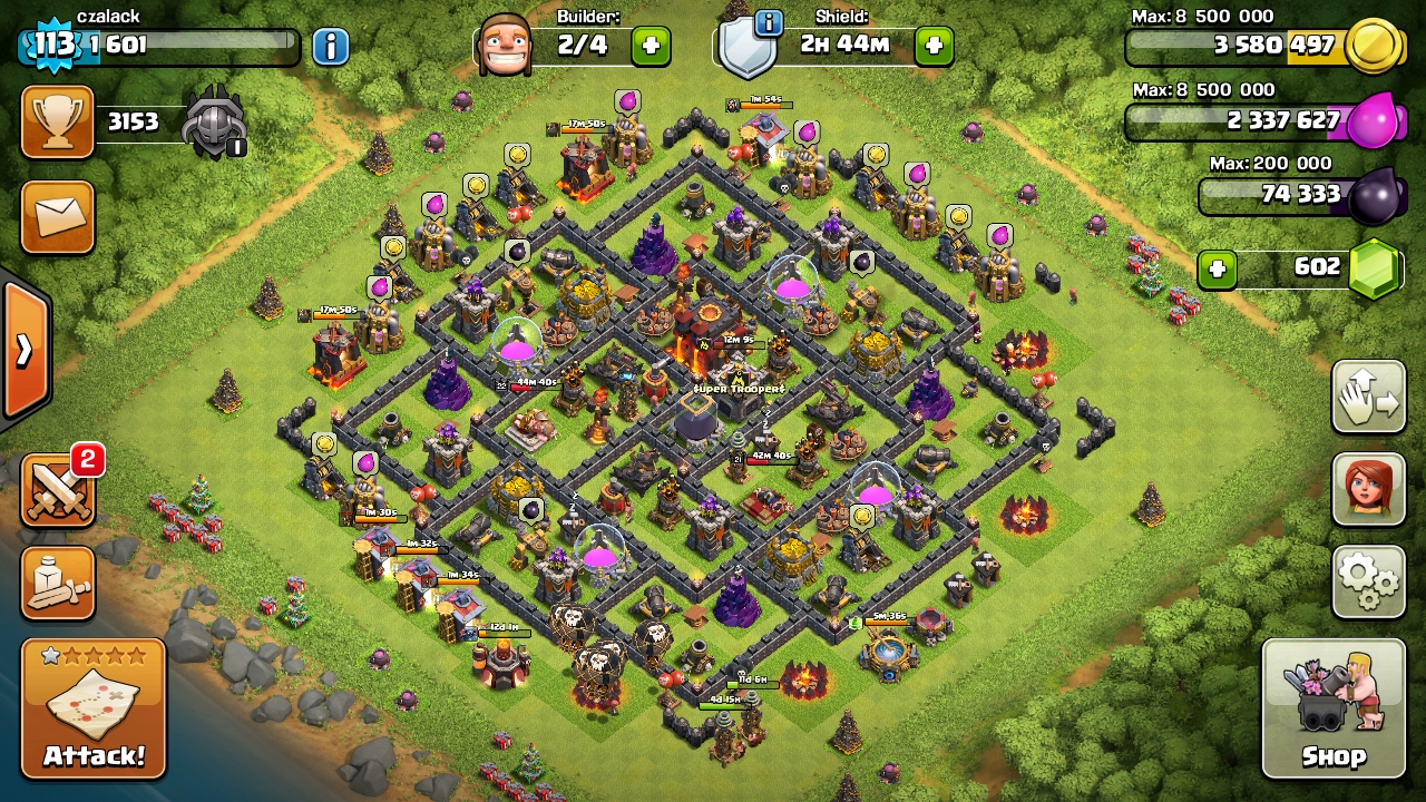 Exact, j'ai quitté il y a un moment maintenant car trop d'inactif chez Koreus. Et bien que la communauté soit sympa, que libre à chacun de jouer comme il veut, patati patata, je préfère être dans un clan actif. Du coup je suis dans un clan lvl 6 américain (pas tous américain du coup), très mature. 2 guerres par semaines ou on se débrouille pas trop mal. Sur 35 personnes, il doit y avoir 5 personnes en dessous du niveau 90 donc ça c'est top aussi, assez homogène. Et voilà l'état de mon petit village. ![]() (@lvishd mes héros ont peu évolué mais niveau recherche EN j'ai bien avancé )