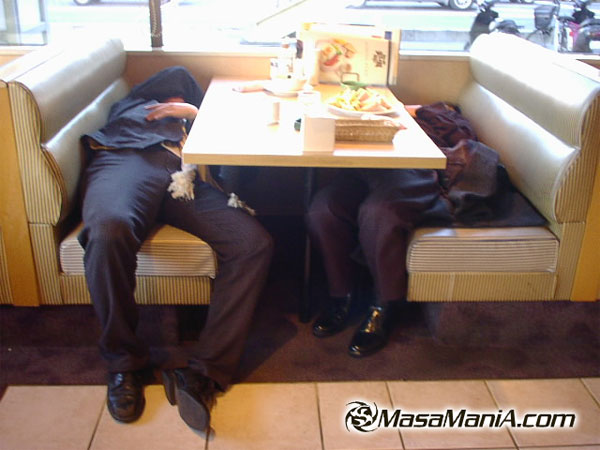 c'est plutôt terrifiant. Ils doivent vraiment bosser comme des tarés pour s'écrouler ainsi de sommeil n'importe où : métro, resto, par terre ...etc.