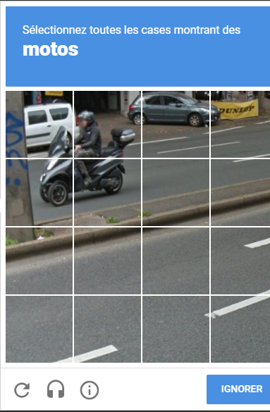 Je te réponds tardivement. De mémoire l'image en question, c'était juste un texte avec un contour. Pas une image ni une photo donc. Je te rejoins pour le captcha avec la moto qui n'est pas non plus à proprement parler insolite, même si le contexte est expliqué par l'auteur. En revanche, tu n'es pas le seul à avoir du mal avec le concept d'images... ![]() Exemple : Citation :