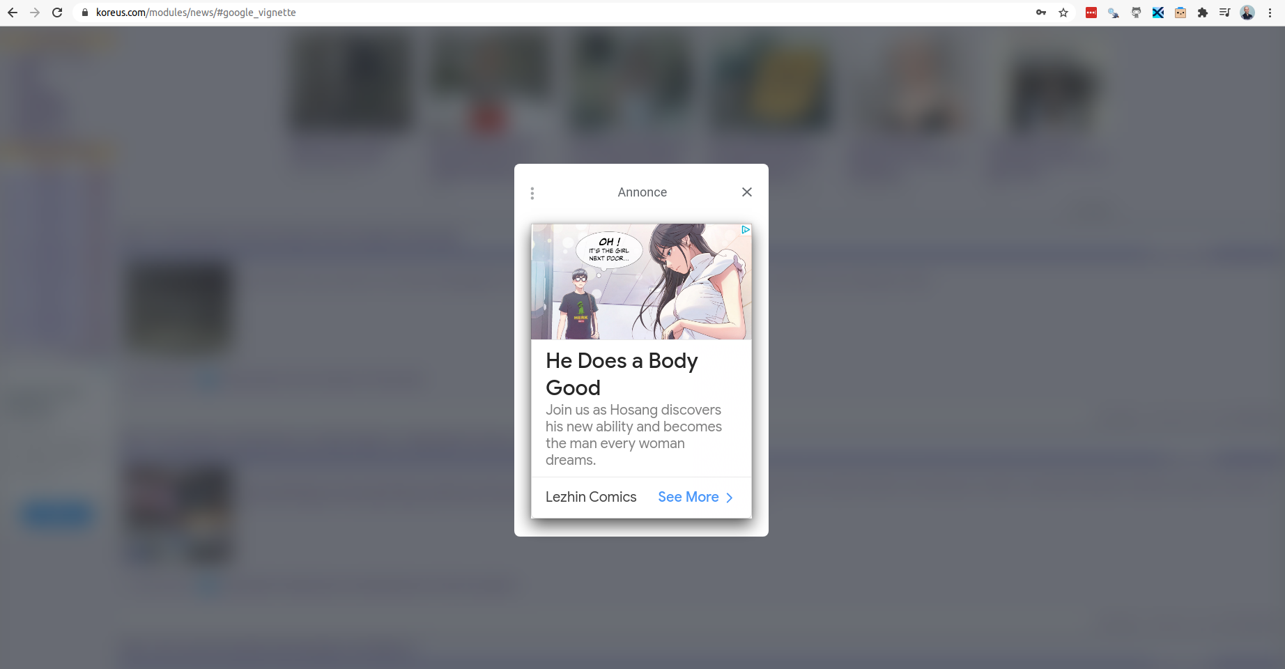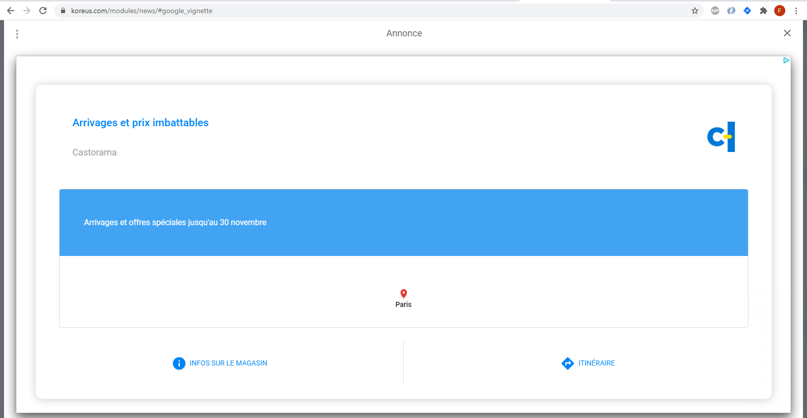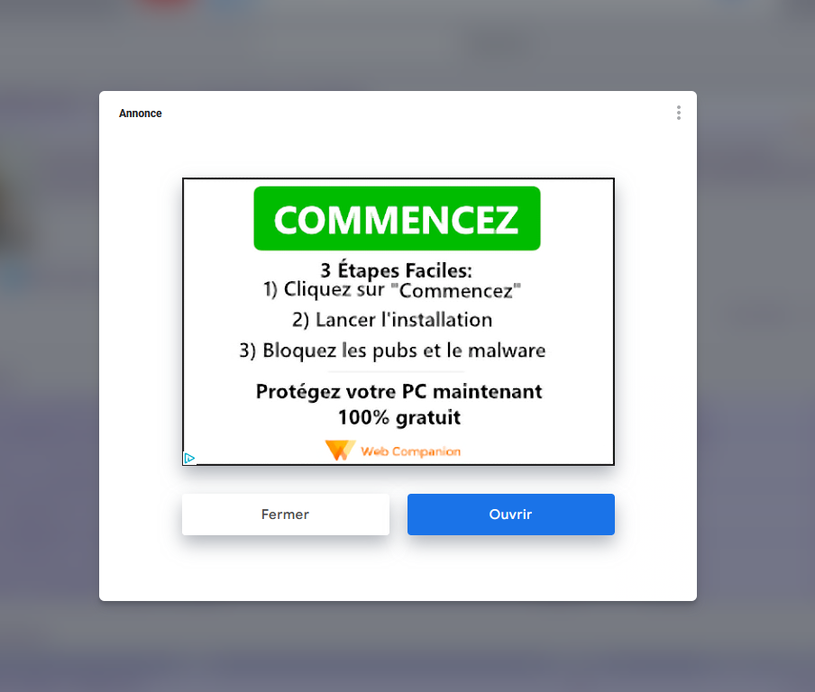 Et encore, sur vos captures c'est un petit rectangle et il y a un effet de transparence qui laisse entrevoir le site en arrière plan. Mais chez moi c'est encore pire, c'est une pub géante qui prend tout l'écran :