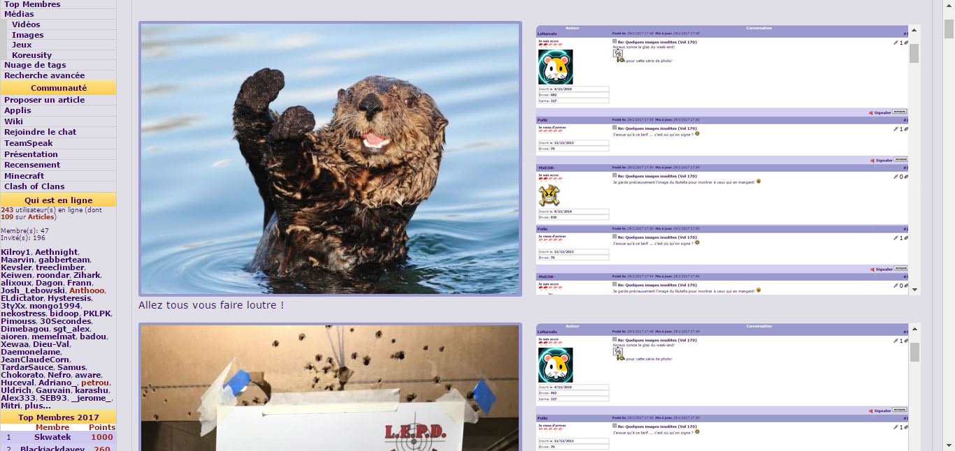 (Plutôt qu'une unique zone de commentaire tout en bas, comme c'est actuellement) EDIT : Articles "Images" - Suggestion 2 : Directement afficher l'info détaillée de l'image (au lieu de devoir cliquer pour voir juste qq mots de description en plus) Les + suggestion 1 : - Pouvoir mettre un commentaire spécifique à chaque image - Ne pas oublier pour quelle image on voulait commenter quelque chose, quand on défile et arrive tout en bas de l'article - Pouvoir échanger plus facilement avec les autres sur une image (plutôt que dire "dans l'image machin n° X, si regarde en haut à droite y a ça") - Du coup favoriser les échanges sur les articles "images" Les - suggestion 1 : - Le GROS point noir pour moi, bah c'est que c'est peut être techniquement infaisable en fait - Ca ferait aussi peut être des zones de commentaires trop petites ? (Faudrait peut être miniaturiser nos avatar ?) Exemple suggestion 1 : ![]() Mince mais je crois que j'en ai déjà parlé non ?
