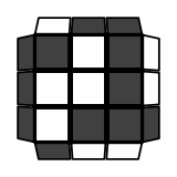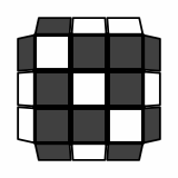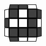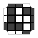 Et sinon celui que j'ai geré en 6h c'est celui là ! J'ai pas cherché de formule autre que celles que je connaissais du 3X3X3 et j'ai dû les interpréter, c'est ça que j'adore faire avec des rubiks ! ![]()