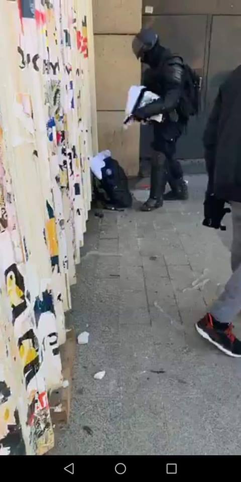 Le journaliste Rémy Buisine (BRUT) se fait agresser par un policier alors qu'il filmait un autre policier se servir de maillot du PSG de la boutique précédemment pillé par les black blocks!