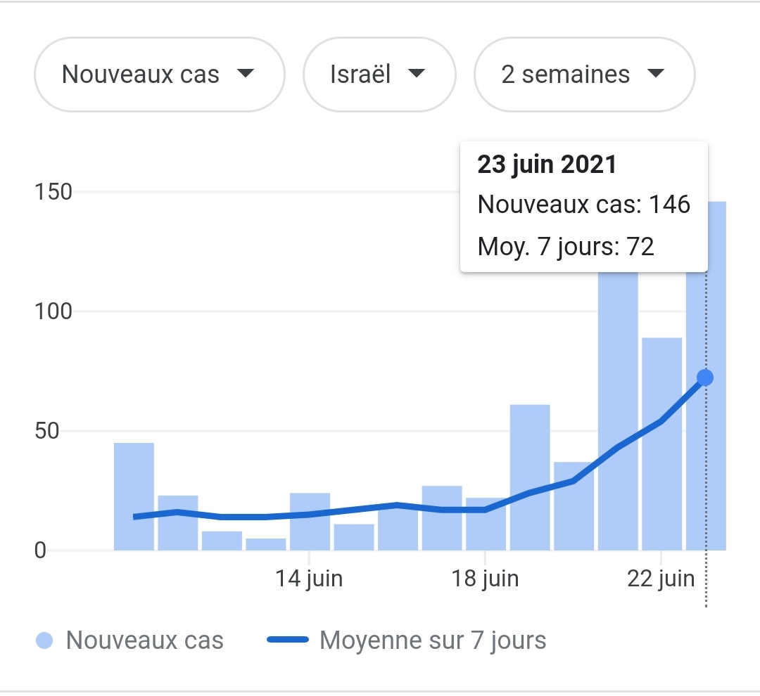 Pfff... Les antivax sont pas très malins. Le but c'est justement l'inverse. C'est de montrer que sans couverture vaccinale maximale, il restera des trous dans le filet. Tout l'enjeu en Israël (et plus proche de nous dans les Landes et les Pyrénées-Atlantiques), c'est le contrôle de l'épidémie. 100 cas, ça reste correct. Si on passe à 250 puis 500 puis 1000 alors l'épidémie sera à nouveau hors de contrôle menaçant une fois de plus la saturation du système hospitalier. Menaçant la bonne prise en charge hospitalière de toute la population (et pas seulement les vieux) dans les pathologies plus ou moins grave. Et j'ai beaucoup de mal à croire aujourd'hui que le gouvernement pourra mettre en place de nouvelles mesures de confinement quand bien même elles seraient nécessaires.