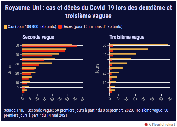 Laissons mourir les vieux, certes... Mais un virus non éradiqué, qui n'est endigué par rien, mute et peut devenir plus agressif, toucher plus de monde. Les masques, tests, vaccins etc, sont là pour tenter de l'endiguer. Citation : Je ne dis pas que le vaccin est une chose négative (je suis à jour de tous mes vaccins), mais toi tu vois cela comme LA solution, permet moi d'en douter, et comme je disais l'avenir nous le dira. Le truc, c'est que l'avenir le dit déjà, donc cette phrase est encore un prétexte. Si tu doutes (et je te permets de douter oui), je te propose de te renseigner sur le fait que la vaccination a permis de réduire drastiquement la mortalité, par exemple au Royaume-Uni où la proportion de vaccinés est plus forte que chez nous. Source : https://www.lalsace.fr/sante/2021/07/21/infographie-comment-la-vaccination-a-fortement-reduit-la-mortalite (le graphique parle de lui-même) ![]() Citation : 3/ C'est clairement une hystérie générale, ces confinements a répétition, ces protocoles souvent ridicule (ne serait ce que pour récupérer ses enfants à l'école, les maitresse masquées face a des enfants en bas âge qui en théorie risque peu, etc...), la crainte de son prochain, les médias et tout le reste qui a son mot à dire. Excuse moi, mais ce n'est pas très serein comme climat. Et encore, j'essaie de prendre du recul. 4 millions de morts dans le monde. Sans tous les efforts que tu cites (et qui sont des contraintes, là oui, nous sommes d'accord), à combien de morts en serions-nous ? Et surtout, le climat serait-il vraiment plus serein ?