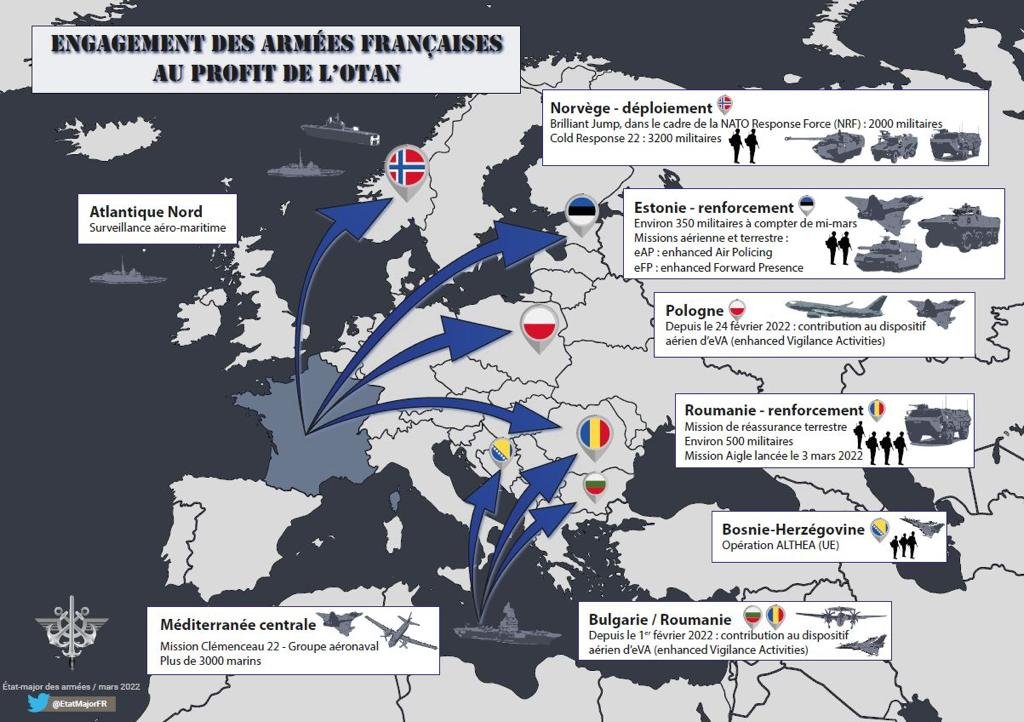 Rien ne ME permet d'affirmer qu'ils vont passer à l'offensive dans les prochains jours. C'est mieux!Mais tu fais bien de rappeler ce qui avait été annoncé pour les Russes! Le parallèle est intéressant.EDIT: @chbenz désolé double notif! Vidéo de mouvement d’équipements biélorusses marqués d’un carré rouge à Slonim, dans l'ouest de la Biélorussie. Des rumeurs affirment qu’un nouvel axe serait créé dans l’ouest avec comme objectif Lviv. _________________________________ 1ère vidéos: Des images de combattants d'Ossétie. Cela fait plusieurs jours que des mouvements de troupes et de matériels dans la région. On peut supposer qu'ils sont redirigés vers l'Ukraine. Ce serait vraiment curieux stratégiquement que la Russie ouvre un front en Géorgie ![]() 2ème vidéos: Des images impressionnantes des défenses anti aériennes de Kiev, ce soir. ![]() ![]() | Anti-aircraft defense systems are active tonight over Kiyv https://t.co/alwLMYq4oy_________________________________ "Dix millions de personnes, soit plus d'un quart de la population en Ukraine, ont désormais fui leurs foyers en raison de la guerre menée par la Russie" a déclaré dimanche le Haut Commissaire des Nations unies pour les réfugiés: Filippo Grandi. L'article de la RTBF contient d'autres informations intéressantes. _________________________________ Mouvements de l'OTAN résumés globalement: ![]()