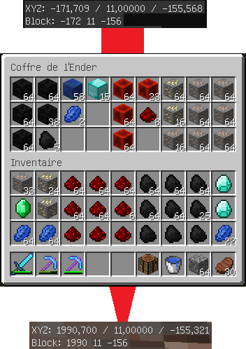 Alors non. Je restreint ta liste, pour ce qui est de ma convenance personnelle ![]() - Pioche "normale" (et encore, avec mending maintenant je m'en fous :p) - Pioche SilkTouch - 1 stack de torche - Quelques rondins de bois pour refaire d'autres torches, le charbon sera miné en cours de route si besoin. - 1 stack de bouffe Pas besoin de fortune (+ table de craft) ET silk touch pour moi. L'un ou l'autre. Et ma préférence va à miner avec la silk exclusivement. Quant à l'ender chest il est régulièrement plein ![]() Et si tu veux je te donne un bouquin silk touch ce soir pour faire une pioche avec ! J'en ai plusieurs. Et t'as déjà pêché du mending donc ça je pense que c'est bon non ? ![]()