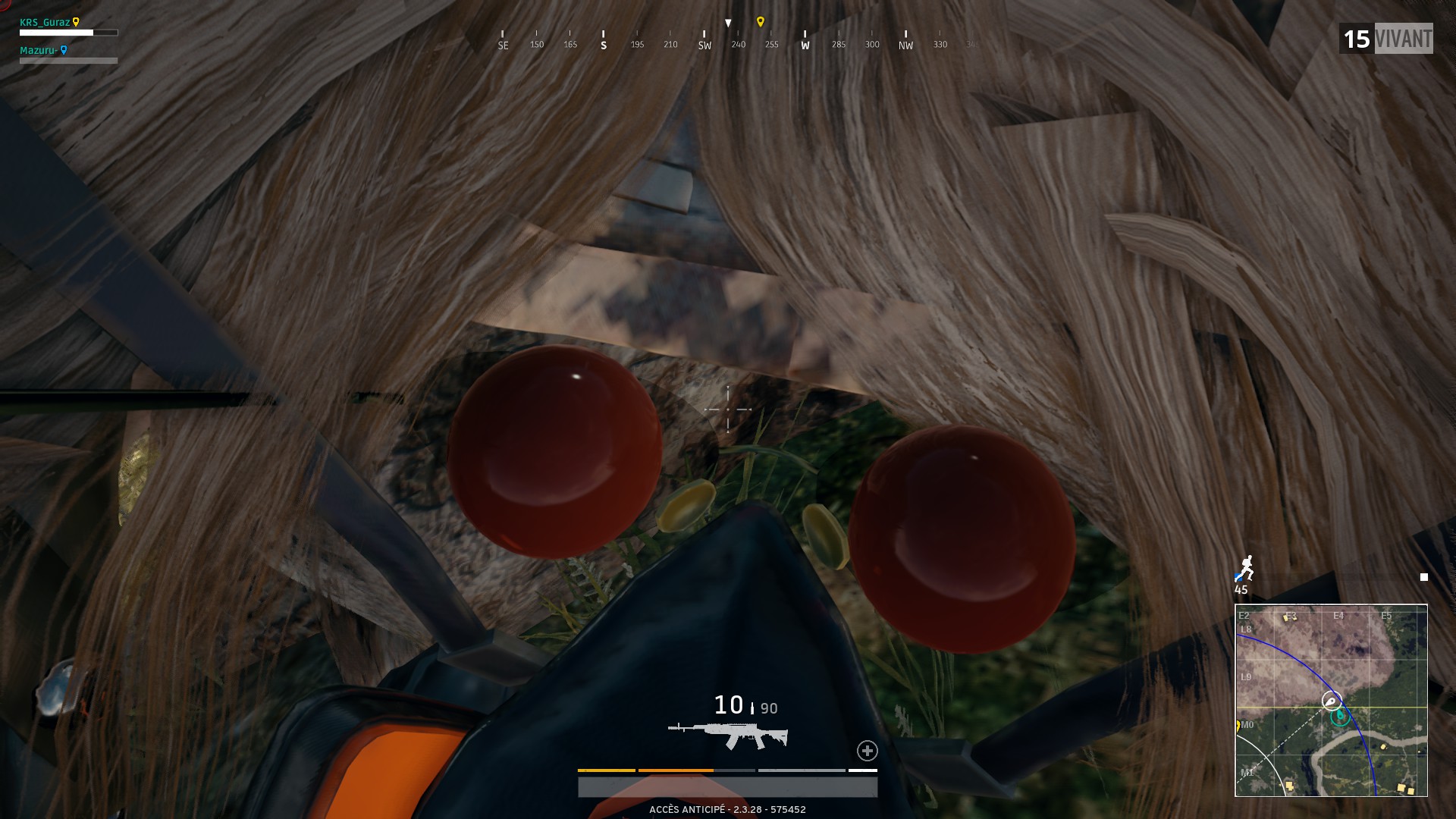 ON A GAGNEEEEEEEEEEEEEEEEEEEEEEEEEEEEEEEE EN DUO !!!!!!!!!!! @WonderSarah Et putain, c'était pas donné Alors, ok on a fait que deux kills chacun mais : - C'était aux moments cruciaux - On avait trouvé 0 ! arme longue portée lors du loot du premier petit village, on a du faire toute une zone sans arme (ou armes de merde) - Sarah a déco 2 fois en courant à travers champs, une fois du TS (donc toute une partie sans vocal) - J'ai déco au moment où la zone bleue nous rattrapait et où on voulait prendre le véhicule, à une seconde prêt elle partait sans moi - Comme on était en PLS, on a fait toute la zone et celle suivante en jeep plein gaz à travers le champs des balles qui volaient dans tous les sens, on a réussi à se cacher derrière une maison près d'une plage pour vite se heal. - En remontant la colline, Sarah se fait avoir, au moment où le type se rapproche pour l'exécuter et loot, je le bute, je la revive vite et on rattrape la zone. - Pendant qu'on rattrape la zone, ya un type aussi en PLS pour pas crever qui court derrière elle, je le bute en courant et je rampe dans la zone. - On se heal, je me fais buter, il reste 4 personnes. Sarah calibre une dernière fois son flingue, tue un type tout pile (il lui reste 2hp, voir screen)... et c'est gagné (les deux autres s'étaient entre tués xD) Putain de game, j'aurais pas parier un sou vu comment elle avait commencé ![]()