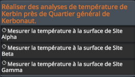 Salut tout le monde ! Je viens de me lancer sur Kerbal depuis quelques semaines et j'avoue galérer un peu sur quelques missions. Entre autre celles qui demandent de réaliser plusieurs analyses à des localisation différentes. Comme celle-ci par exemple :