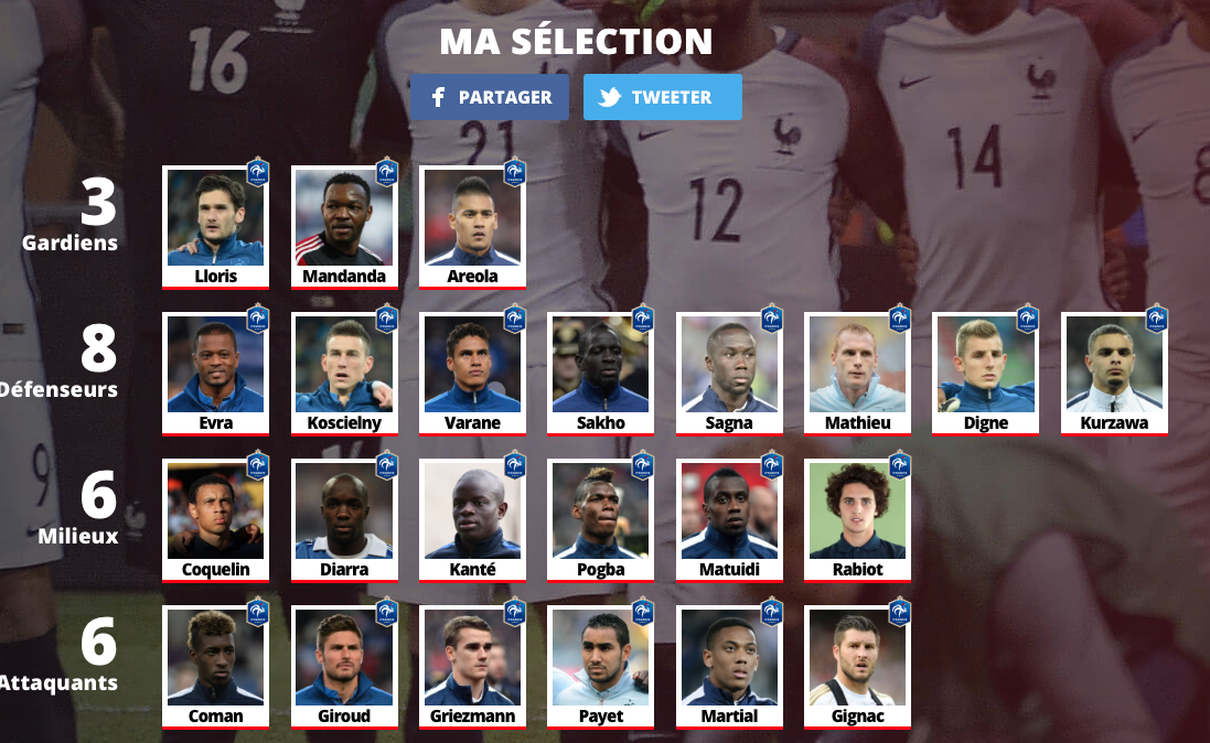 Je m'ennuyais alors j'ai fait la sélection qu'il n'y aura déjà pas à l'Euro