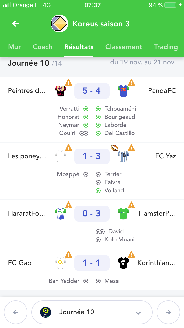 Dégouté de ce match nul, but mpg de Messi noté 6.5 mais 3 sur l'équipe et donc match nul qui me fait perdre une place au lieux d'être dans le top 3