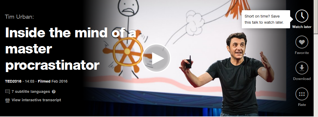 Le sujet : pourquoi remettons-nous tout au lendemain? Lien TED Je suis sur que certains d'entre vous se reconnaîtront...