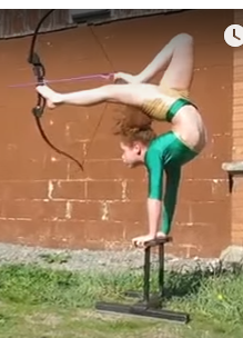 Streetwise Cat by Justin Scrutton Une fille fait du tir à l'arc avec les pieds en envoyant les flèches dans des ballons de baudruche. 9 year old foot archerer nails target