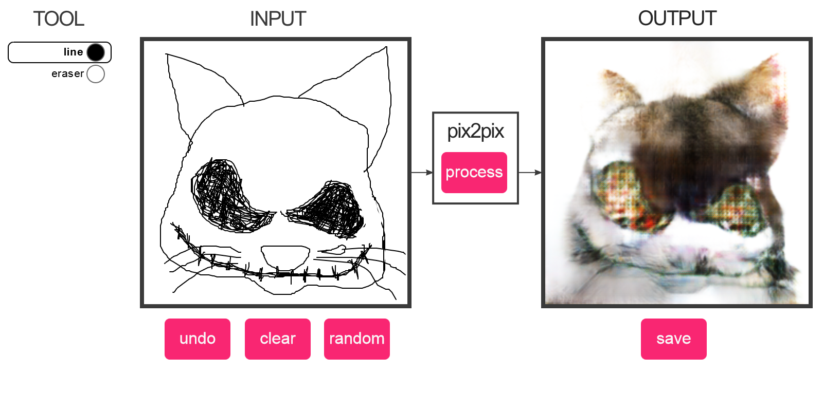 Vous pouvez transformer vos dessins en chats, mais aussi en immeuble, en chaussures... etc C'est un peu étrange et bizarre dit comme ça, pour mieux comprendre, je vous invite à essayer! (Un exemple de ce que les gens ont réussi à faire avec cet outil https://twitter.com/notamyliu/status/834222434890833920 )