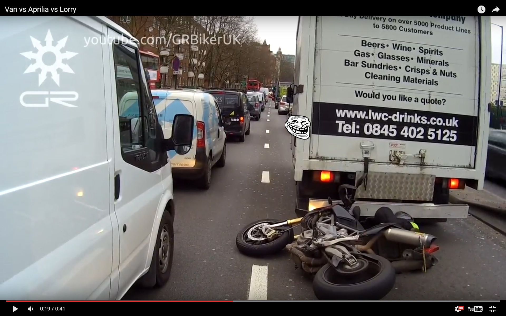Une femme perd le contrôle de ses haltères Un motard essaie de passer entre deux véhicules Van vs Aprilia vs Lorry