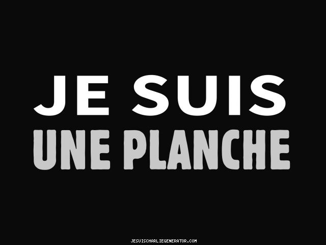 tes cheveux gras ton tee-shirt qui pue la sueur et ton haleine de castor, tout le monde sait que tu es, au fond, un grand sensible qui s'ignore; que ces images terribles seront pour TOI comme autant d'échardes dans tes pieds marchant sur le grand chemin de la vie, rejoint nous sur: #cestquiquisauvelaplanche et formons une grande chaîne de solidarité avec: @Karalol et sa planche SOLIDARITE chargé de la sensibilisation auprès des plus jeunes. @CrazyCow et son célèbre JE SUIS UNE PLANCHE chargé de la communication. Un Euro de chacun d'entre nous, et une planche est sauvée! @MILOT chargé de récolter les fonds nécessaires à ce grand mouvement. DES RONDS POUR LA PLANCHE!