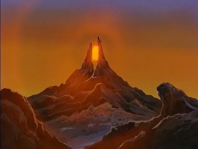 Ca me fait penser à un épisode des Cités d'Or, où un rayon de soleil passe à travers 2 pics montagneux pour éclairer l'entrée de la cité où ils trouvent le Grand Condor (et j'arrive pas à trouver d'image)