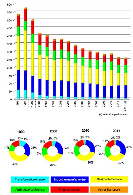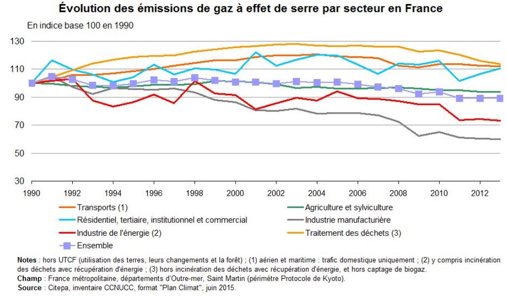 Et effectivement, intéressant Après on parle d'un type de pollution (particules fines), et d'un type de particule dans ces particules fines (le souffre, aprmis oxydes de souffre et oxydes d'azote notamment). Faudrait une analyse plus global pour intégrer d'autres polluants. En tout cas en France, voici les émissions de particules fines par secteur : le "autre transport" inclue j'imagine le bateau ? (A moins que ca se retrouve dans "industrie manufacturiere" mais j'en doute). Et on voit que la part est complètement minime ![]() Via sciencesetavenir.fr Et je site : Citation : Transports : L'argument selon lequel le secteur ne représente que 15% des émissions est fallacieux, car il s'agit d'un calcul global. Dans les villes, la voiture est bien le principal pollueur. Quant aux gaz a effet de serre en France, ca diminue très légèrement (enfin a ce rythme on devrait plutot dire que ca stagne ^^). On voit que le transport aerien et maritime est l'une des plus grandes sources, mais quasi au meme niveau que le secteur traitement des dechets, le secteur residentiel & tertiaire, et le secteur agriculture. ![]() Via statistiques.developpement-durable.gouv.fr => Bref, pour la France, effectivement, a priori rien d'extrèmement préoccupant vis a vis du transport maritime. D'autant que comme dit, ils émettent loin des habitations (en pleine mer), ou les emissions ont le temps de se dilluer dans l'atmosphère, peut etre etre transformé chimiquement. Mon avis : - Je reste d'accord avec ce qui est dit. Faudrait imposer des limitations dans ce secteur. - Mais surtout, faudrait moins acheter d'ordis, telephones, jeux videos,vetement, meubles, objets etc. Car le transport maritime, ca transporte "90% des marchandises dans le monde" (France Nature Environnement). C'est pas rien. - Meme si en fait le secteur du transport maritime ne semble pas etre la part spécialement majoritaire de la pollution aux gaz a effet de serre (graphique 2), ni aux particules fines (grahique 1) (Bon après me suite peut etre gourré dans les chiffres rapportés