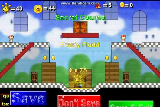 Idéal pour les fans de mario & les nostagiques ![]() >> Pour jouer << Les controles : Flèches (dont bas pour glisser), Z (parler) X (attaque en tournoyant, voler en tournoyant), C (activer le jet d'eau), shift (pour changer de jet d'eau) Aide et infos Note : Vous pouvez régulièrement sauvegarder en ligne, quitter le jeu et y revenir plsu tard (j'ai l'impression que ca garde en mémoire en fonction de votre IP)