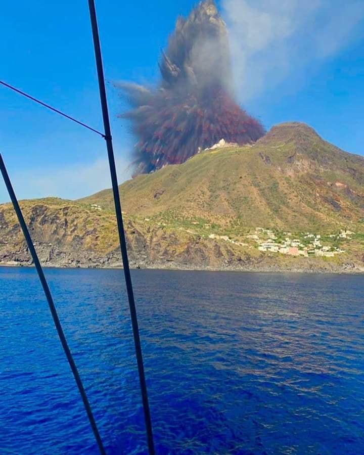 Il momento esatto dell'eruzione dello Stromboli ripreso dallo yatch Gioisa Solaris one 44