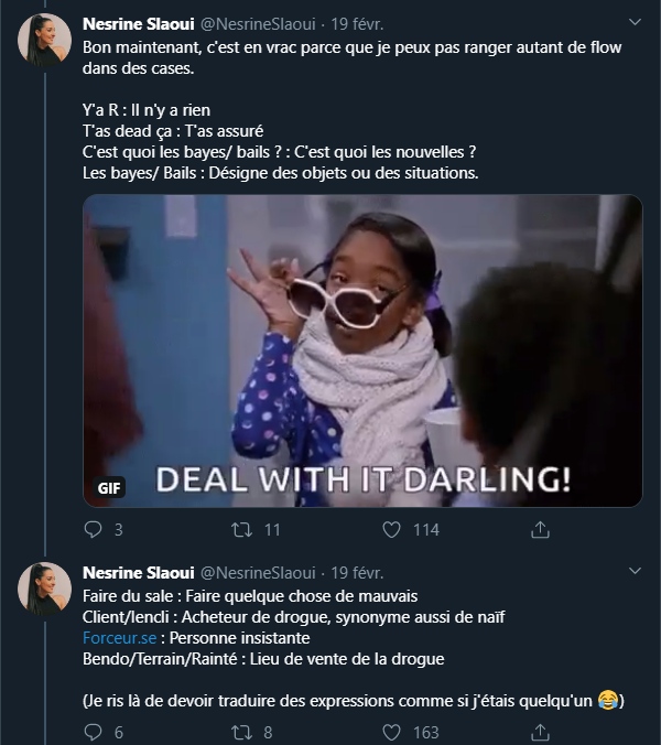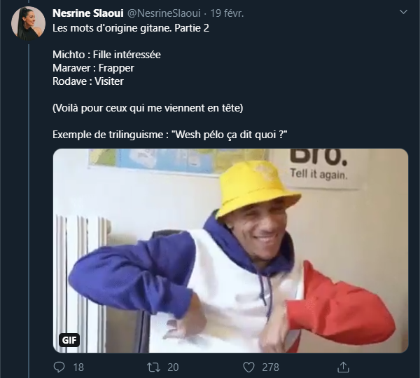 Wesh gadjo, je t'ai mis un +1 en deuspi. Cheh. Amour et flouss pour toi, pélo. Bon, je me benda, les méchants sont là et ils veulent m'emboucaner. Je veux pas faire de la D, mais si vous n'entendez pas de bails de ma part, c'est que je suis dead de ouf.