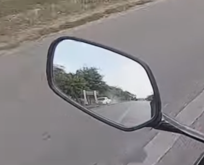 J'ai l'impression qu'il essaye de faire une embardée vers la moto qui le double...