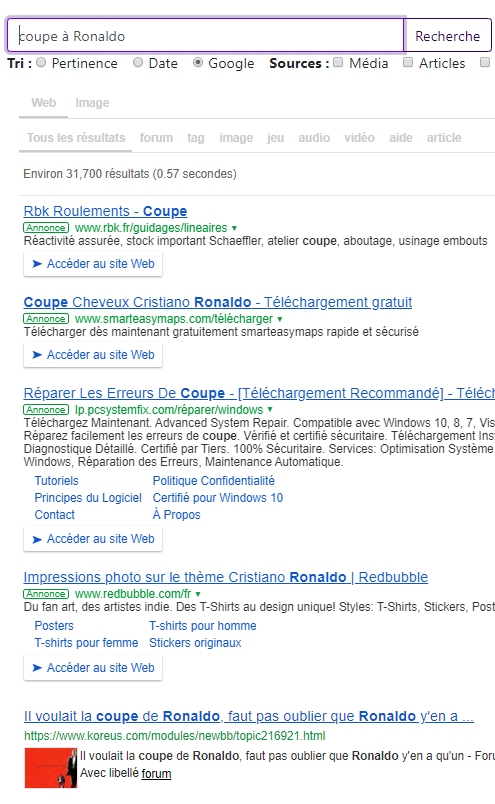 Ah bon ?! Ba pourtant j'ai copié/collé ton titre dans la recherche et je suis tombé sur le premier lien directement (en enlevant les annonces google): ![]()