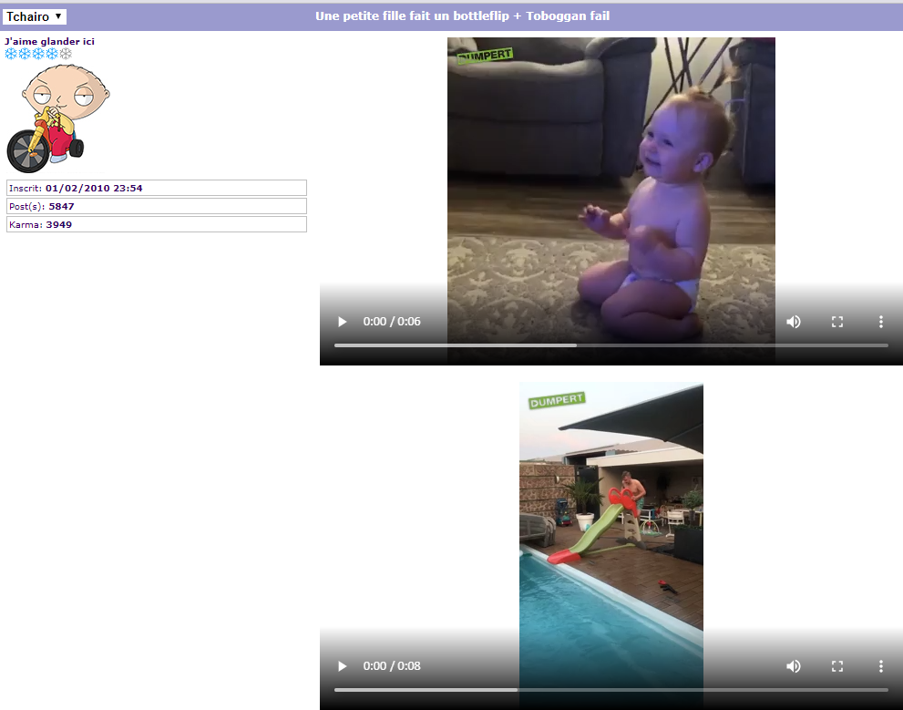 | Tchairo | Une petite fille fait un bottleflip + Toboggan fail  |