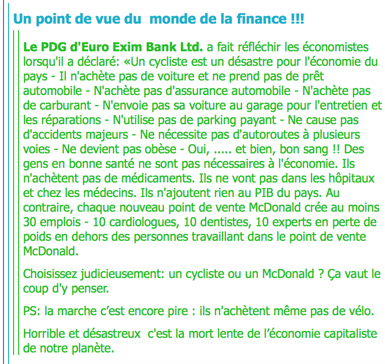 En plus, c'est bidon. https://www.ayupp.com/facts-check/sanjay-thakrar-ceo-euro-exim-bank-ltd-cycling-bad-for-economy-15825.html Le bien de la nation, c'est quand même de vérifier avant de partager ^^