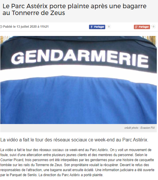 Les agents ont refusé qu'il aille la récupérer, et la situation a dégénéré. Bagarre générale entre des clients et les responsables du manège et de la sécurité. Bagarre générale au Parc Asterix.