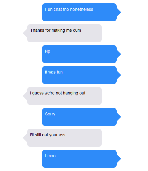 C'est pas une vidéo et c'est en anglais dsl mais c'est plutôt drôle et intéressant En gros y'a un gars "catfish" qui a trouvé une faille dans l'appli tinder, il a créé un bot et a réussi à piéger des hommes en faisant apparaitre un faux profil tinder féminin à la place du leur, ainsi des hommes se sont matché entre eux pensant chacun d'eux parler à une femme. Ce site répertorie les conversations qu'il y a eu et c'est assez marrant à lire surtout quand ils se rendent compte du malentendu ![]() ("attends... comment ça avec ton pénis ?? ")On note d'ailleurs que les conversations vont beaucoup plus rapidement à "l'essentielle" et tout semble trop facile (enfin de mon point de vue après vous je sais pas ^^ )Plus d'infos ici sur l'expérience: https://catfi.sh/about