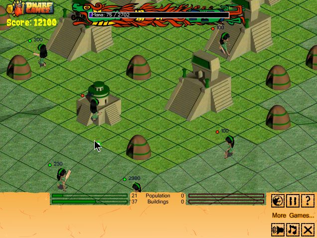 Combien de temps survivrez-vous à ce labyrinthe en résolvant cette énigme? ![]() ![]() Souris pour le Point & Click et viser / tirer 1/2 pour changer de la souris à l'arme Arise 4 Aztec God Game Créez la lus grosse civilisation aztèque en édifiant vos maisons et vos temples tout en convertissant les païens. L'ordinateur contrôle un Dieu rival qui va tout faire pour vous détruire ![]() Vous visualiserez votre évolution sur la carte en bas à droite. ![]() Tout à la souris (il y a d'autres contrôles mais c'est plus simple de tout faire avec un seul bouton :-D) Aztec God Game Gunfire Echoes Protégez votre base en shootant vos nombreux et variés ennemis et en plaçant des tours ![]() ![]() Souris pour viser et tirer R pour recharger A/D pur bouger la caméra S pour lancer une attaque monstrueuse Gunfire Echoes Missing Mechanism Placez les objets qui vous sont proposés de façon à amener les boules dans les sacs ![]() ![]() Tout à la souris Missing Mechanism