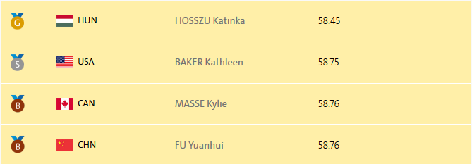 Elle a gagnée une médaille de bronze en finale, ex-aequo avec la canadienne MASSE Kylie.