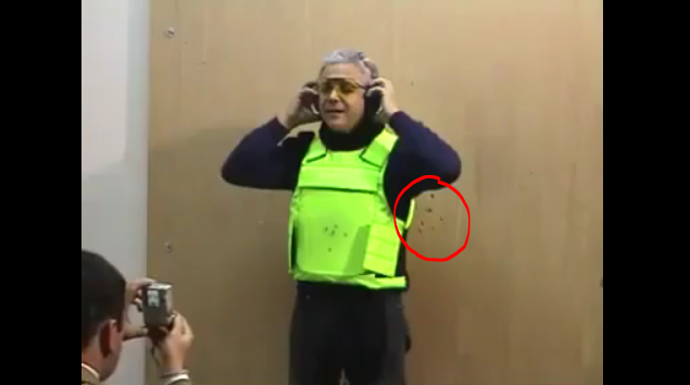 Un homme test un gilet pare balle sous les tirs d'un AK-47.