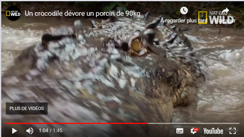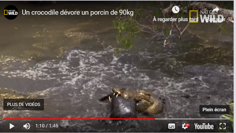 A 100% avec mes deux vdd, il n'y a rien de possible dans cette video. Rien que le crocodile, on voit d'abord un caiman lambda mais les prises sous-marine c'est un gavial reconnaissable à son museau plus long et plus fin. Un crocodile, quel qu'il soit, ne saurait attraper un porcin aussi gros et le déchiqueter aussi vite, un animal de cette taille se débattrait et se fracasserait les os mais le croco devra attendre que sa proie soit inactive avant d'avaler un seul morceau et en général il essaie toujours de noyer la proie pour pouvoir arracher des morceaux car ses dents ne cisaillent pas les chaires mais ne servent qu'à arracher et les mâchoires ne savent que s'ouvrir et se fermer mais peuvent pas mastiquer.