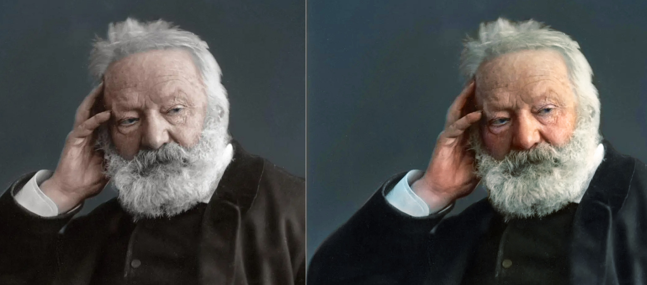 @AymericCaron Ben en fait c'est simple genre techniquement au niveau du logiciel, tout le monde peut facilement coloriser des photos plus ou moins de la même façon que dans la vidéo juste avec quelques tutos en y connaissant pas grand chose. Mais par contre pour avoir un résultat réaliste c'est au contraire un exercice difficile qui demande certaines connaissances autre que l'utilisation du logiciel. Il suffi pas de choisir une couleur et de l'appliquer de partout sur toute la surface du matériel, y'a tellement de paramètres qui rentrent en compte. Les différentes sources d’éclairage, entre éclairage artificiel ou naturel etc différentes teintes possibles à différent endroits du sujet. La réflexion des couleurs d'un élément à l'autre, faut pas sous estimer cet effet ![]() La translucidité, très important par exemple pour la peau. La lumière en gros pénètre plus ou moins la matière donc on pourra avoir des ombres plus saturés et rouges sur la peau que sur un autre matériel. Et pour la peau il y a aussi surtout à prendre en compte les zones d’irrigation du sang, pleins de zones du corps ont des teintes différentes en passant du bleu au jaune et au rouge en exagérant. Prendre en compte qu'il n'y a jamais de vrais blanc noir ou gris, l'éclairage ambiant plus les objets colorés autour font que tout est plus ou moins coloré. Par exemple ta barbe est totalement dé-saturé ça se voit tout de suite. J'ai fait des modifications pour l'exemple, ça me parait mieux pourtant j'en suis pas satisfait on vois bien que c'est une colorisation comme quoi c'est vraiment pas simple: ![]()