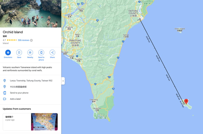 "Taitung, 26 avril (CNA) Un navire transportant des marchandises de Taitung à l'île Orchid a coulé tôt mardi après avoir été heurté par un grand navire marchand au large de l'île Green, mais les neuf membres d'équipage ont été sauvés sains et saufs, selon l'Administration des garde-côtes (CGA). .... Les neuf membres d'équipage du navire - huit Taïwanais et un Indonésien - ont été secourus par le personnel des garde-côtes à partir d'un radeau de sauvetage, a indiqué la CGA. Hsu Chih-hsiung (許志雄), un responsable de Shin Fa Marine Co, propriétaire du Da Fa No. 1, a déclaré à CNA que le navire avait été "frappé sur le côté" par le navire libérien, alors qu'il transportait des marchandises du port Fugang de Taitung à l'île Orchid." ![]()