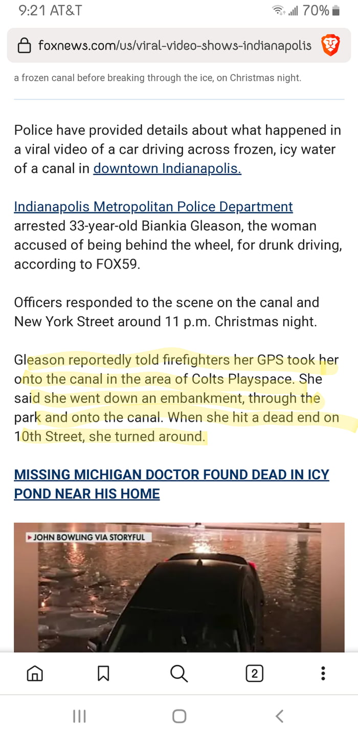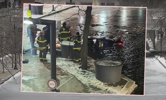 À Indianapolis, une femme conduit sur un canal gelé en croyant que c'est une rue. Le résultat: ![]() ![]()
